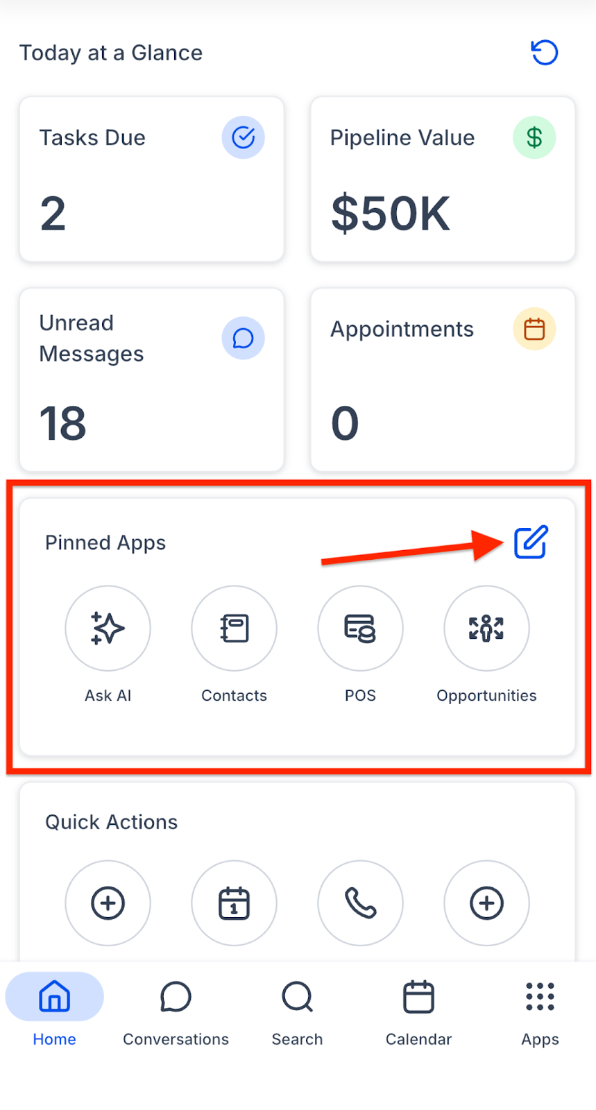 Quick Actions help you complete important tasks instantly.