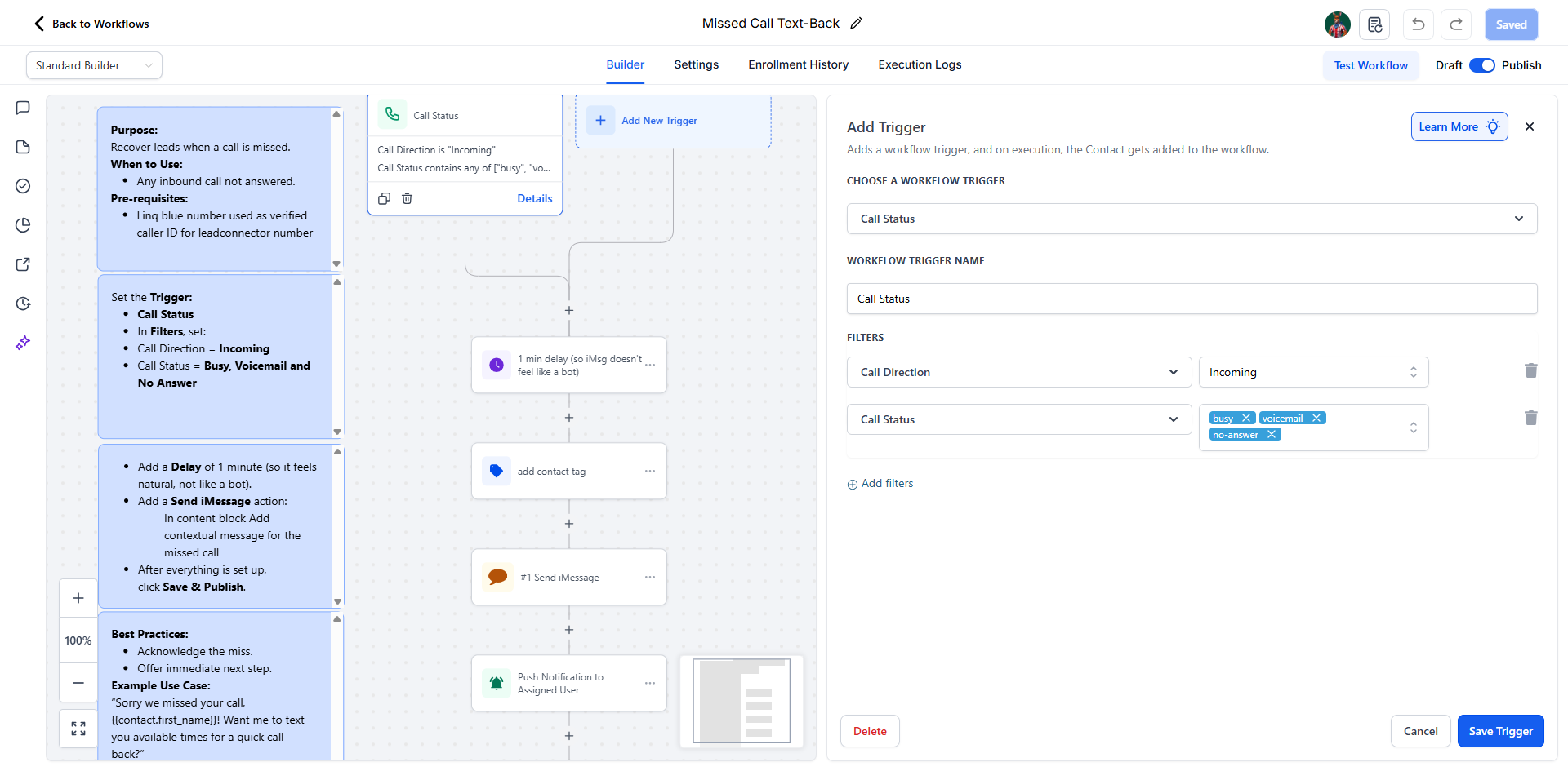 Linq Blue-How to Set Up Missed Call Text-Backs