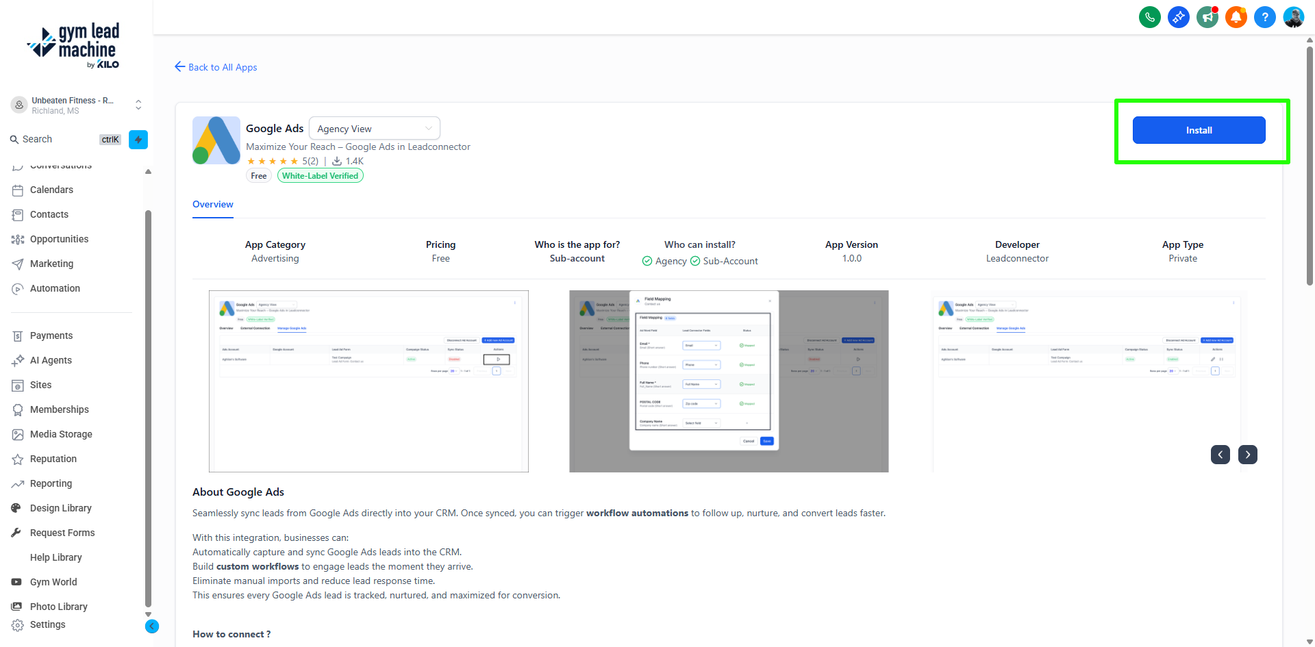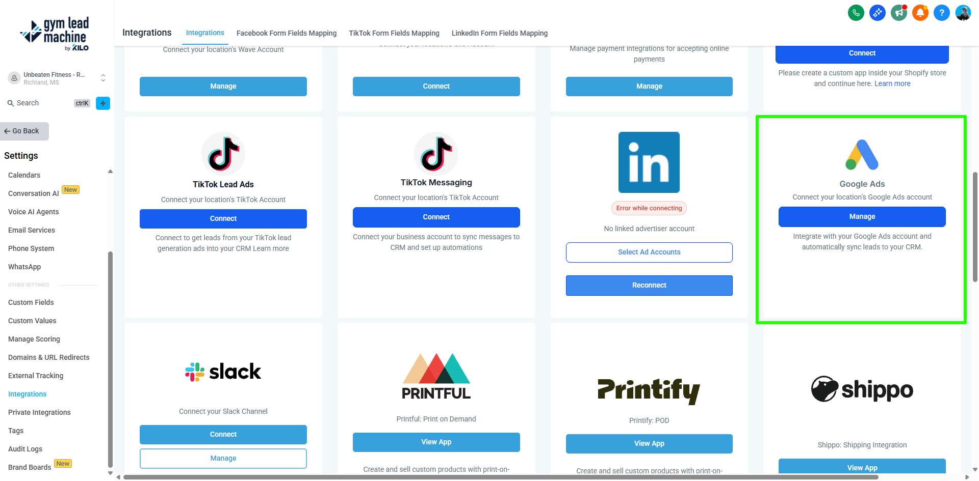 Connect Google Ads with Gym Lead Machine CRM